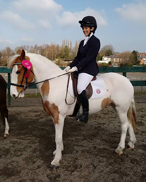 Sarah qualified to compete in novice at the 2015 Area Dengie dressage semi final at Abram farm riding Danny.