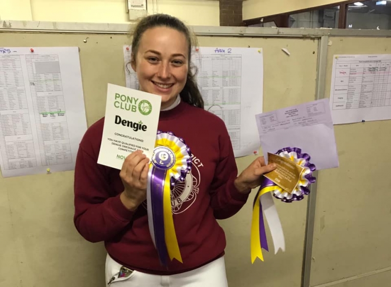 Nicola and Rachel competed in the Dengie Novice, Nicola won the class on 75% and qualified for the Dengie semi finals.